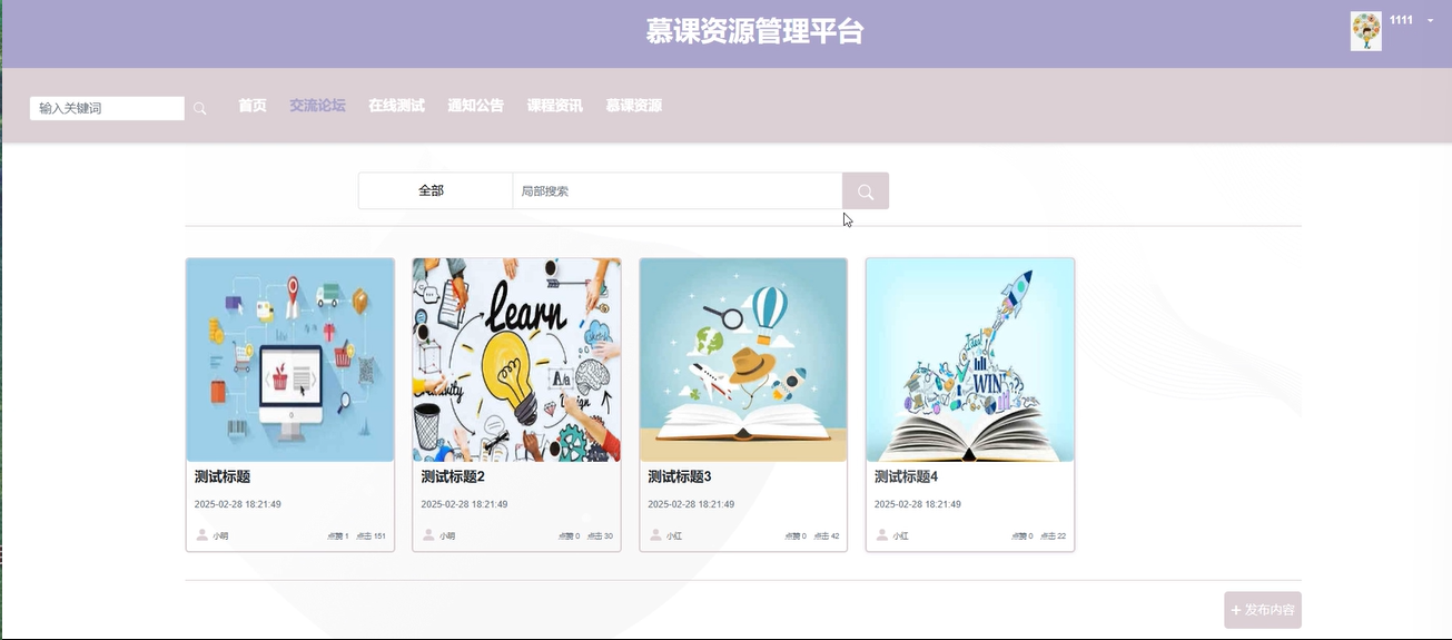 慕课资源管理:管理员可以管理平台上的所有慕课资源,包括上传、删除、更新课程内容等。管理员能够保证资源的完整性和可用性,确保学生能够顺利学习。
