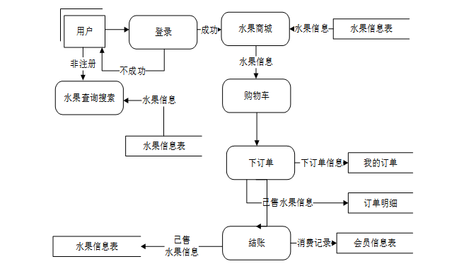 智果商城购物系统主要的目的就是实现对水果的在线选购,图3-3就是系统的数据流图。