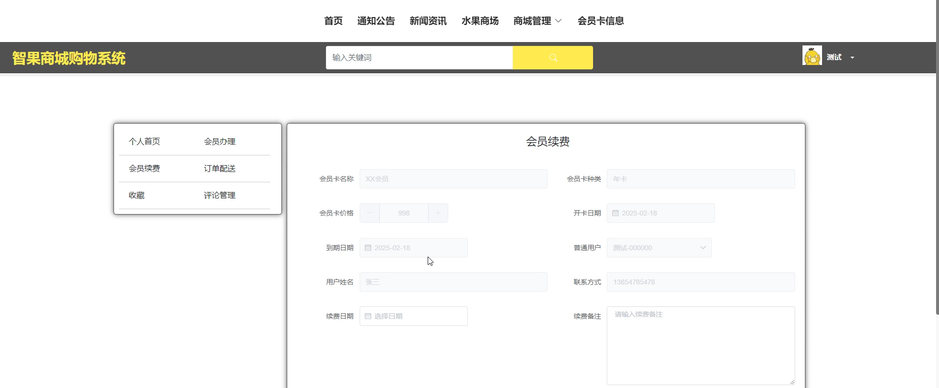 - 会员续费:可以实现会员在线进行会员续费操作;