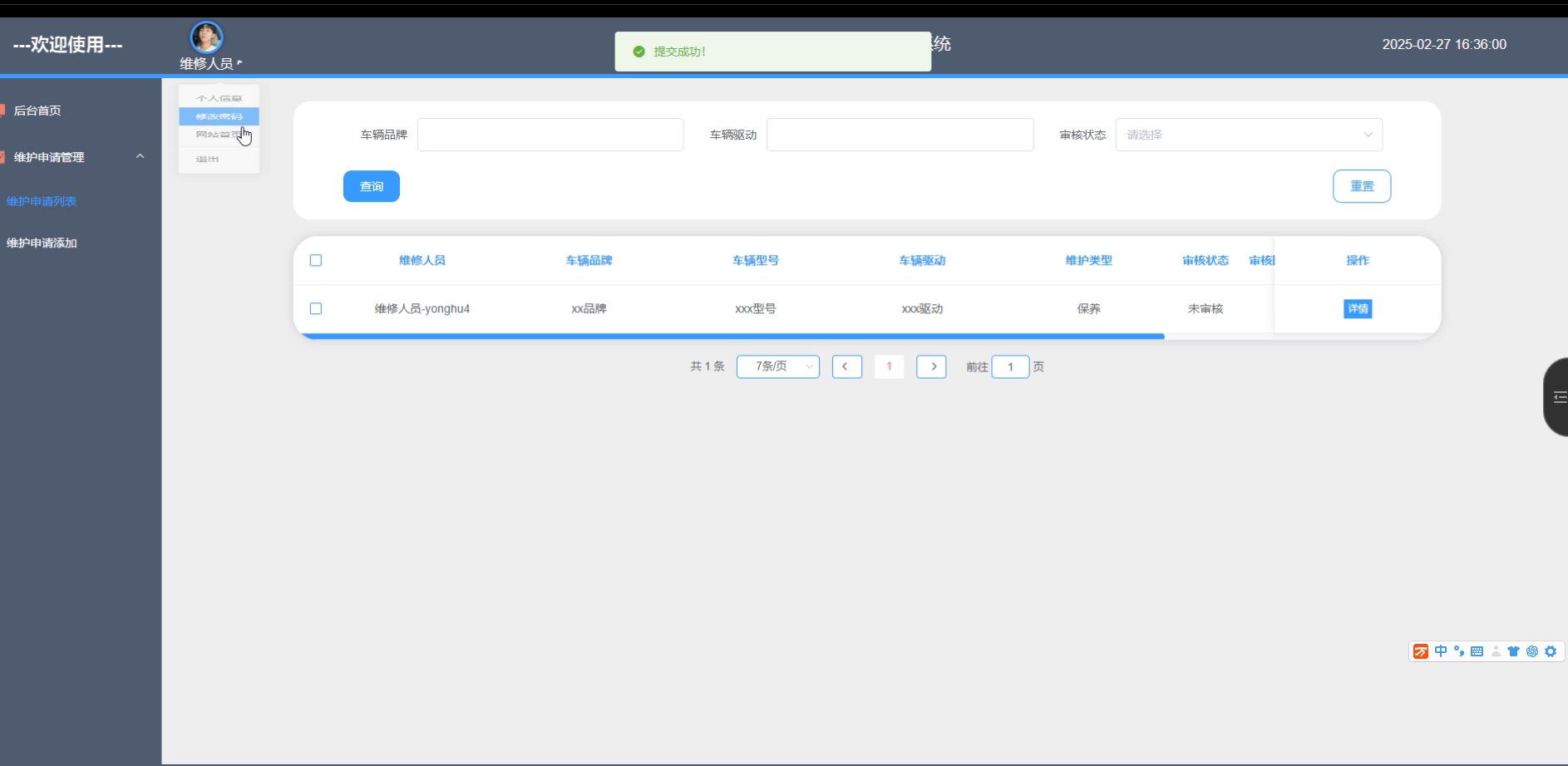 | 查看车辆信息测试 | 登录系统 进入车辆信息页面 使用搜索栏输入关键词搜索车辆信息 | 无 | 符合预期 |