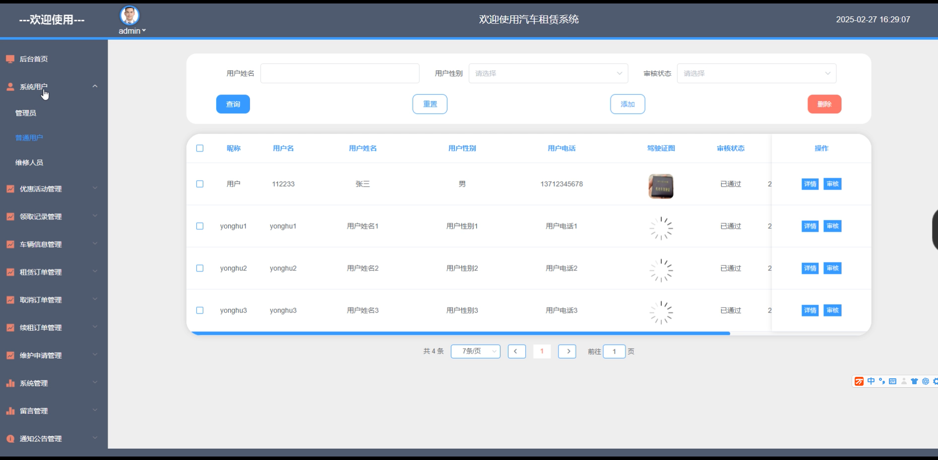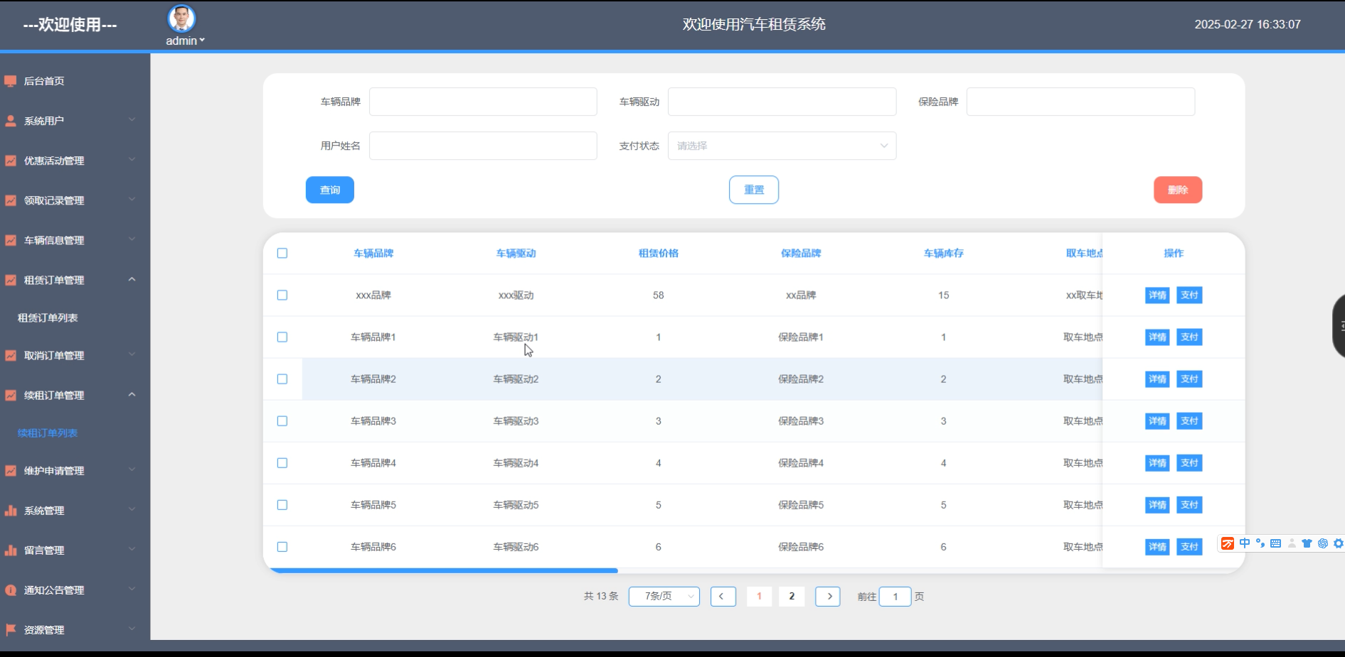 Key words: SpringBoot, Car rental system, system design, front-end and back-end separation