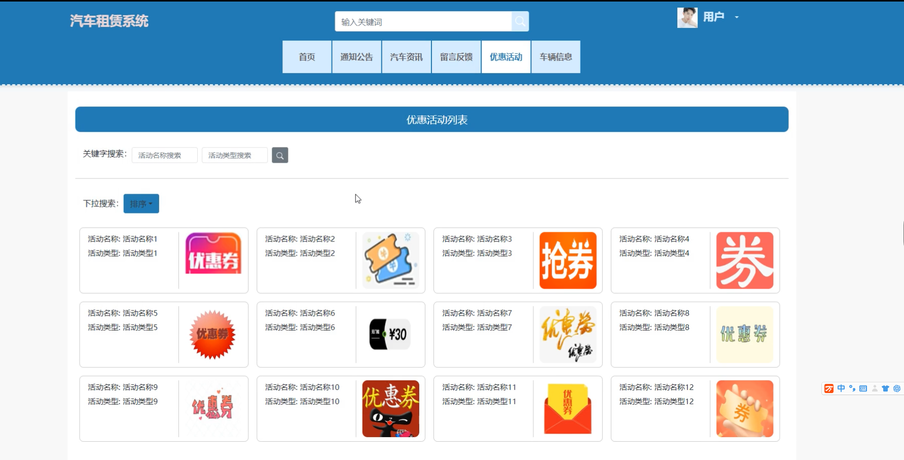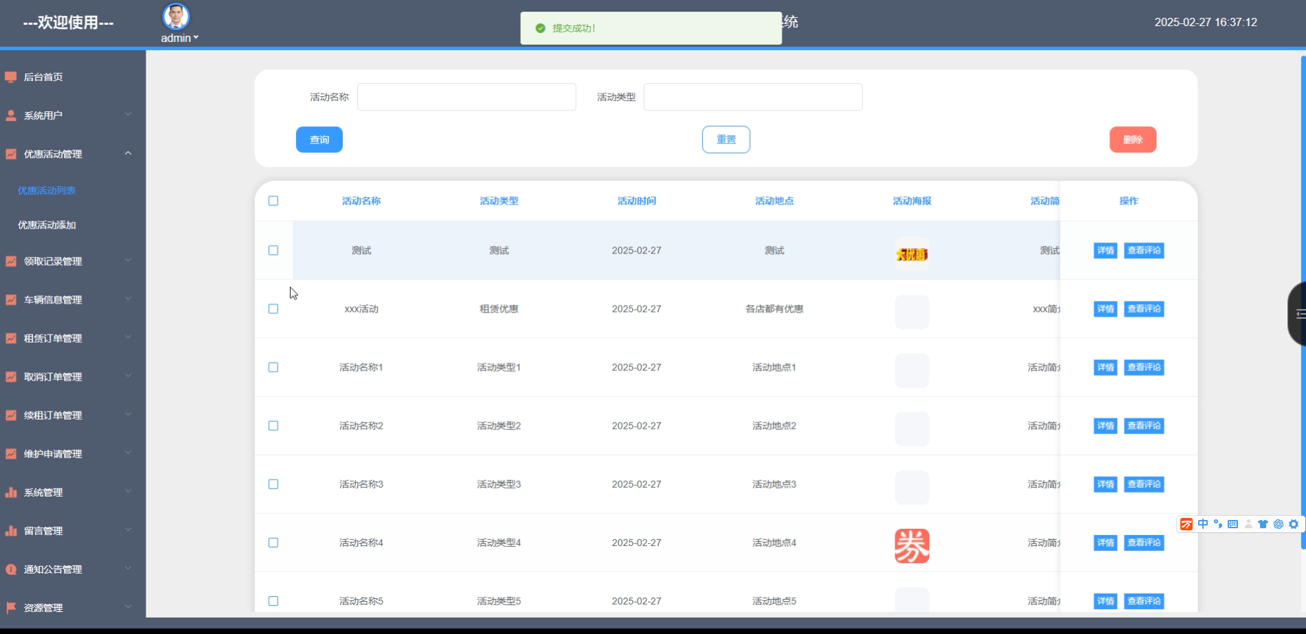 图5-8优惠活动管理界面
