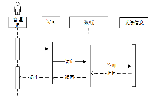 管理员通过访问系统发起请求,系统接收访问后转向系统信息模块进行管理操作。管理完成后,系统返回管理结果至系统,最终反馈给管理员,管理员可选择退出。管理员管理系统信息时序图如图4-6所示。