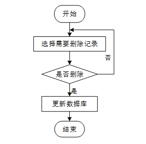 用户选择需要删除的记录后,系统判断是否确认删除。若未确认,返回选择环节;若确认删除,则更新数据库,删除对应记录,完成操作后流程结束。删除信息流程图如图3-9所示。