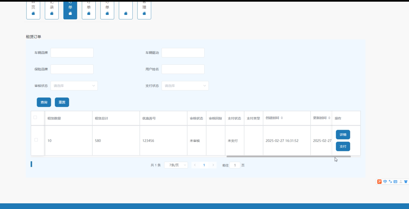 图5-12续租订单管理界面