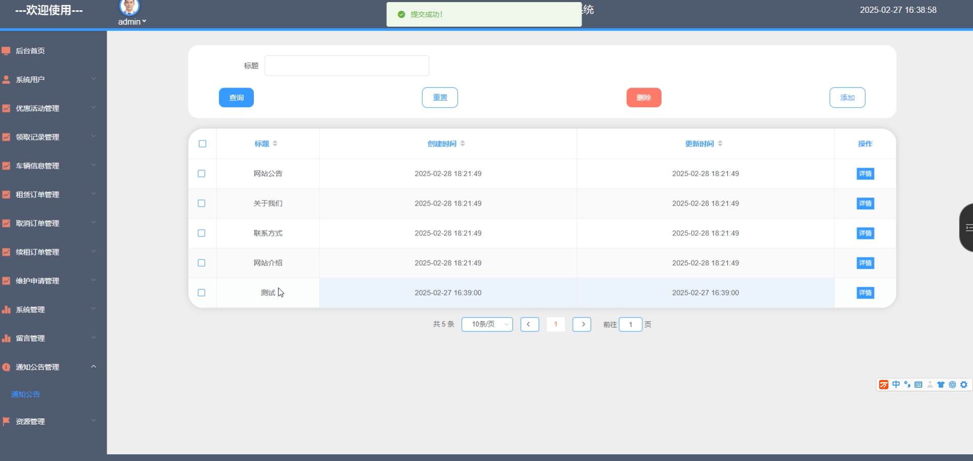 图5-9通知公告管理界面