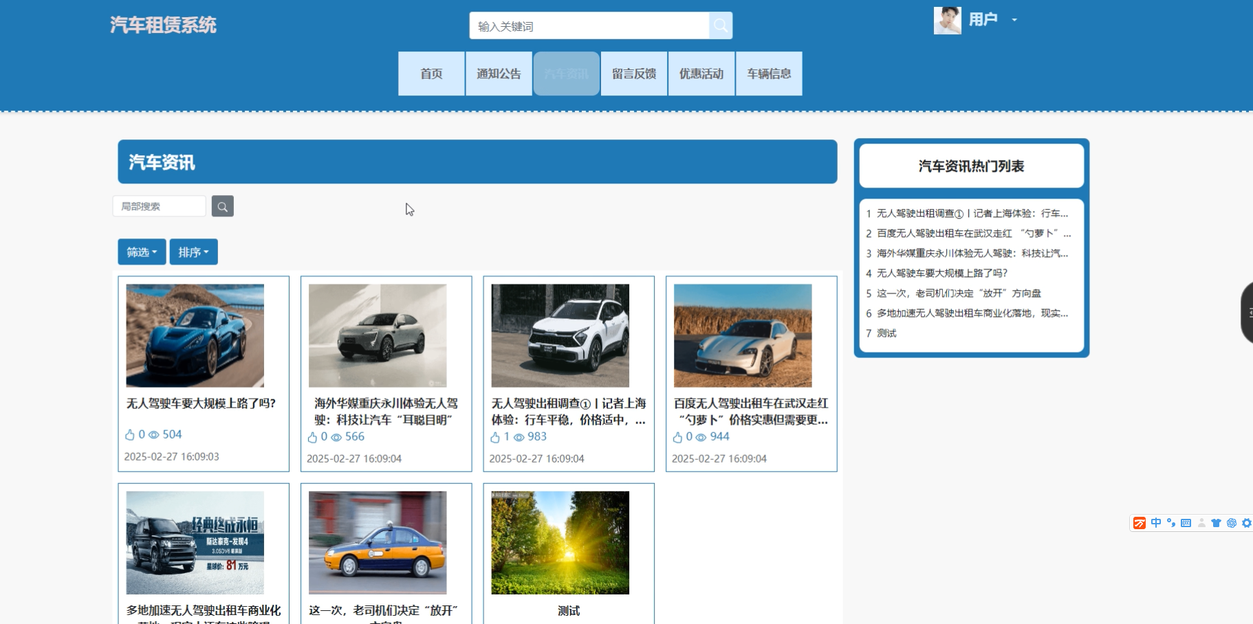 随着互联网技术的不断发展和人们出行需求的增加,汽车租赁行业在近年来迎来了快速发展。传统的汽车租赁模式已难以满足现代用户对便捷、高效、个性化服务的需求,基于Web的汽车租赁系统应运而生。本论文基于JavaWeb技术,采用SpringBoot框架,设计并实现了一款汽车租赁系统。该系统通过前后端分离的方式,提供了管理员、普通用户和维修人员三类角色的功能,涵盖了租赁、订单管理、优惠活动、车辆信息维护等核心功能。