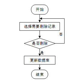 用户选择需要删除的记录后,系统判断是否确认删除。若未确认,返回选择环节;若确认删除,则更新数据库,删除对应记录,完成操作后流程结束。删除信息流程图如图4-5所示。