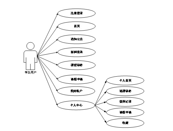 (8)个人中心:个人中心包含多个功能模块,如个人首页、选课信息、签到记录、请假申请和收藏。