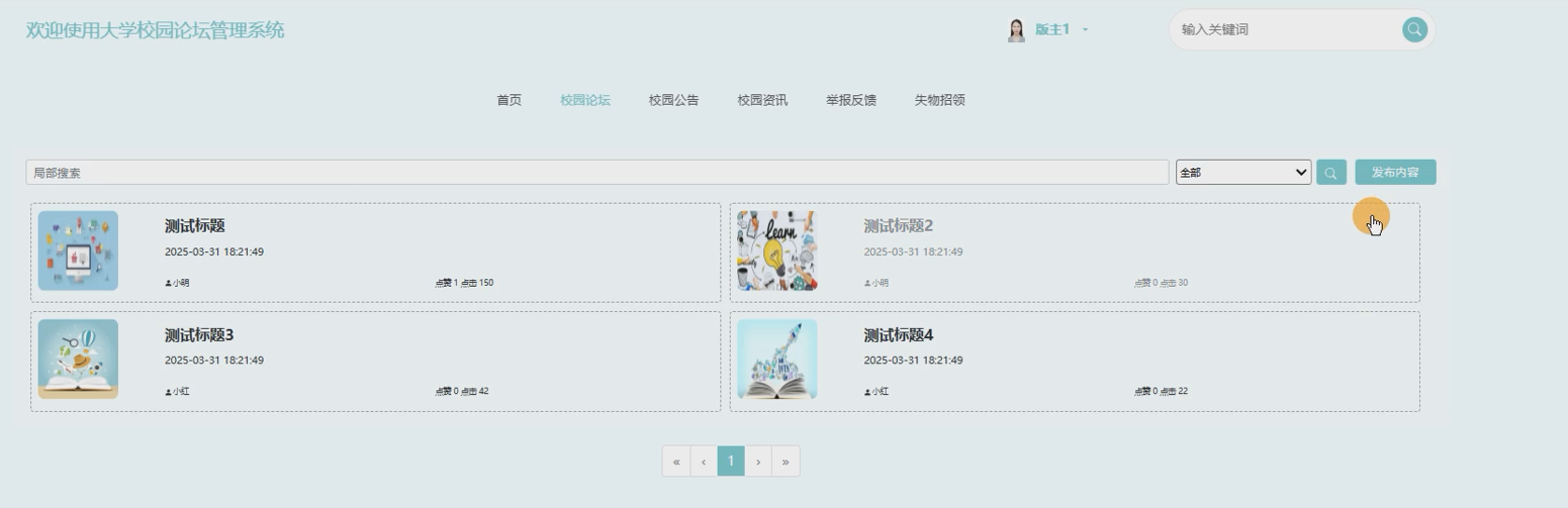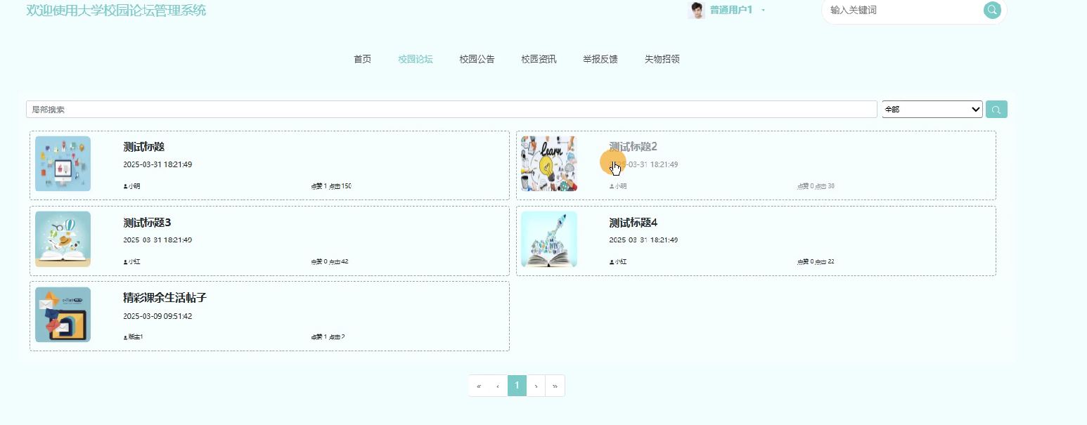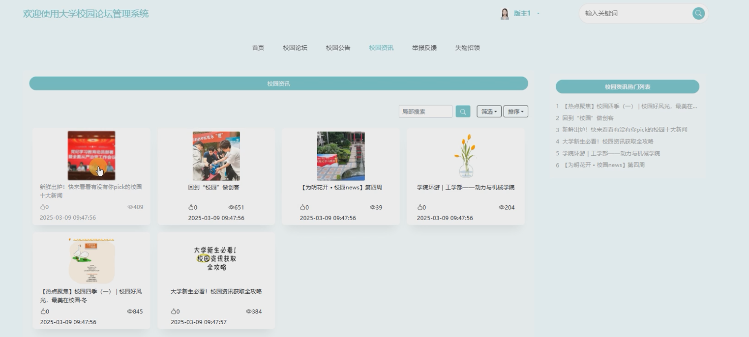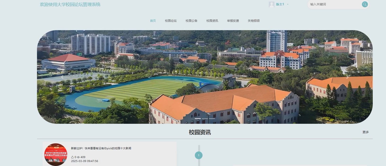 - 首页功能:展示论坛的最新动态、热门帖子以及校园公告。