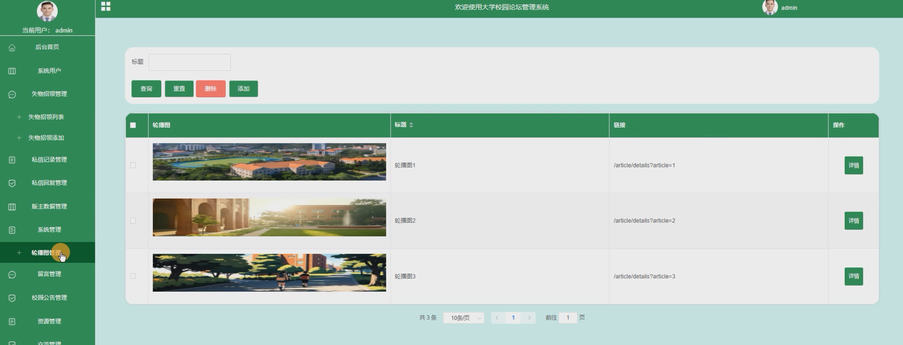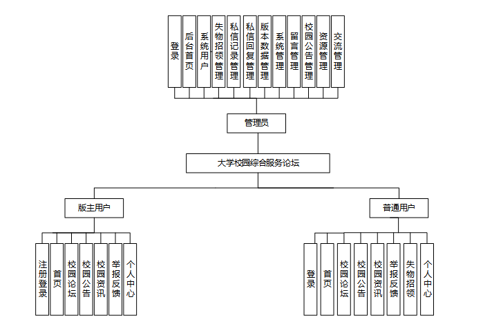 - 交流管理(校园论坛):管理员可以管理论坛分类、发布新的讨论话题、管理帖子及评论等。