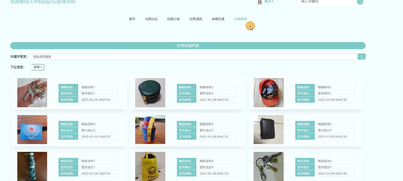 - 失物招领:用户可以查看失物招领信息,发布自己捡到的物品或寻找失物,促进校园资源共享。