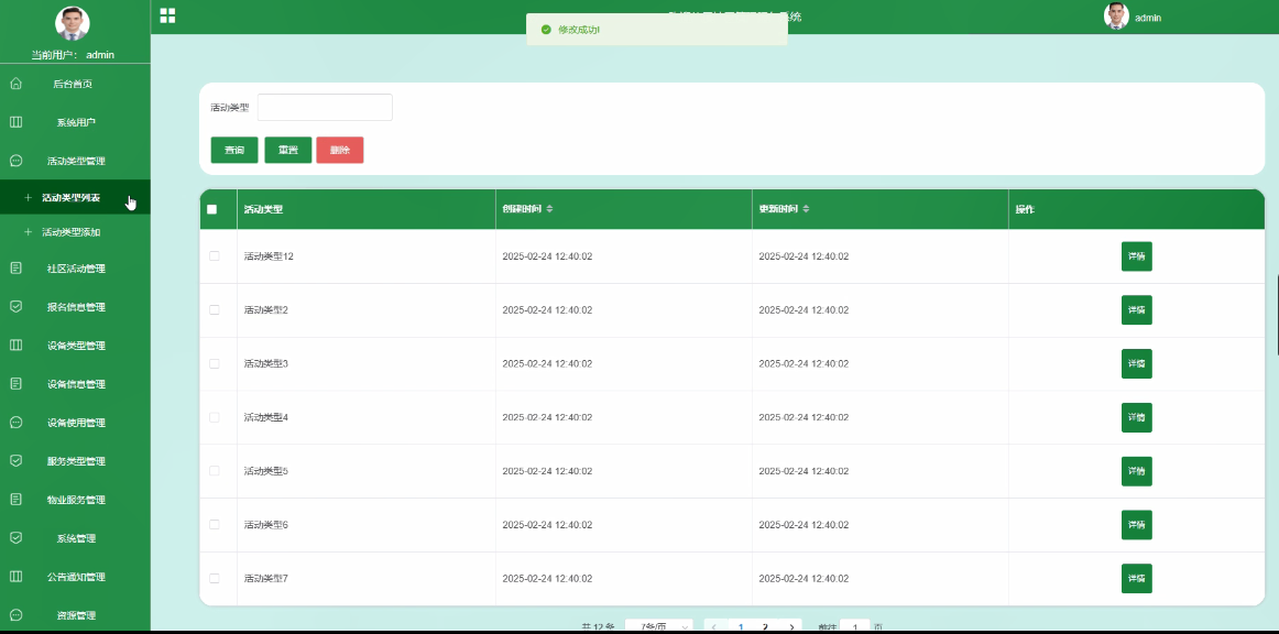 (2)活动类型管理:管理员可以查看活动类型列表,并对活动类型进行删除、添加操作。