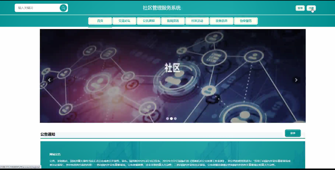 关键词:社区管理服务;springboot框架;MySQL数据库