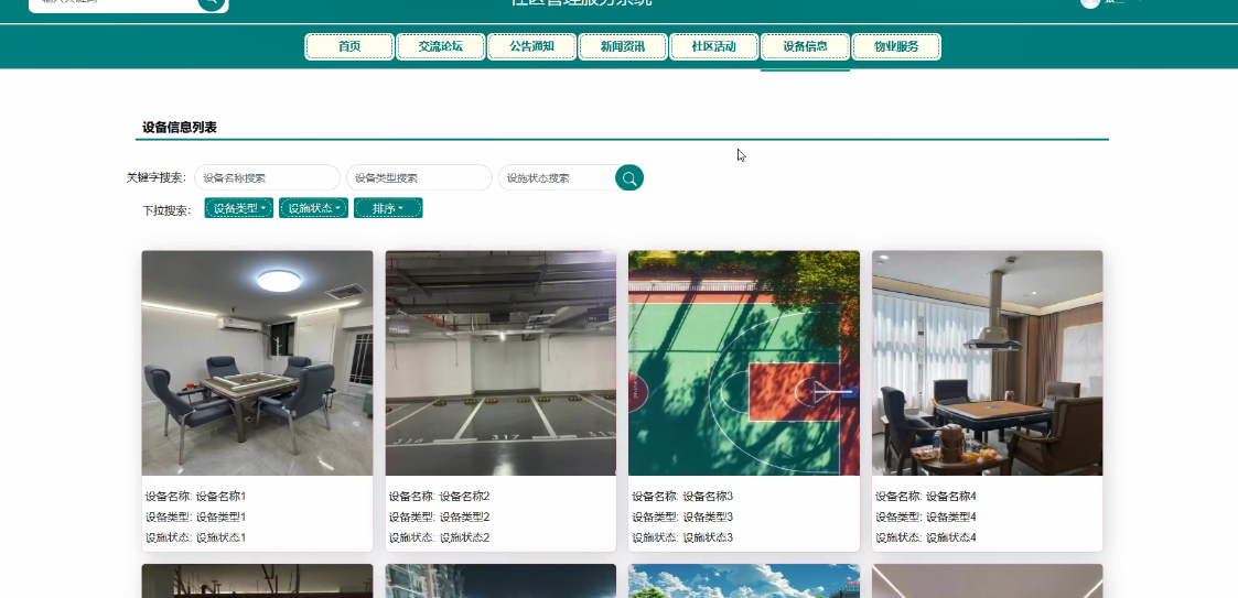 (6)设备信息:用户可以查看设备信息的详细情况,包括:设备名称、设备类型、设施状态、设施位置、并进行申请使用操作。