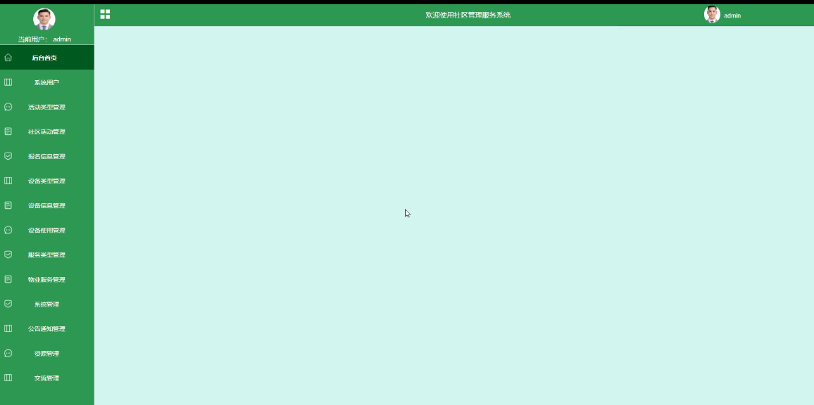 管理员可以对系统用户、活动类型管理、报名信息管理、社区活动管理、设备类型管理等进行操作。其界面如下图4-6所示: