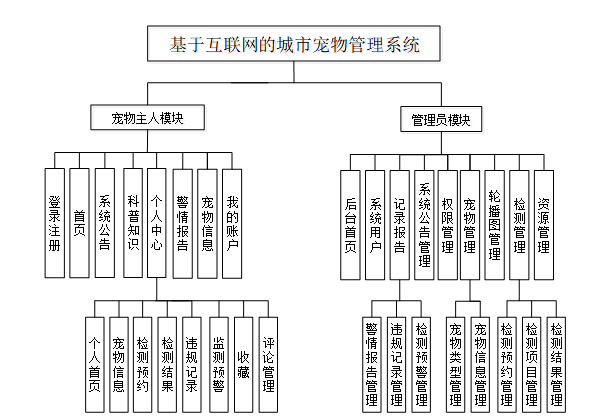 本论文围绕基于互联网的城市宠物管理系统的设计与实现进行了全面的分析,系统分为两个主要角色:宠物主人和管理员。以下是对这两个角色的功能详细阐述。