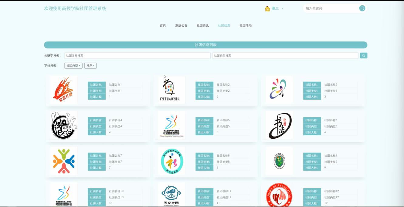 社团信息:学生用户可以查看感兴趣社团的基本信息,包括社团介绍、成员构成、活动内容、联系方式等,帮助学生了解社团的背景和活动情况。
