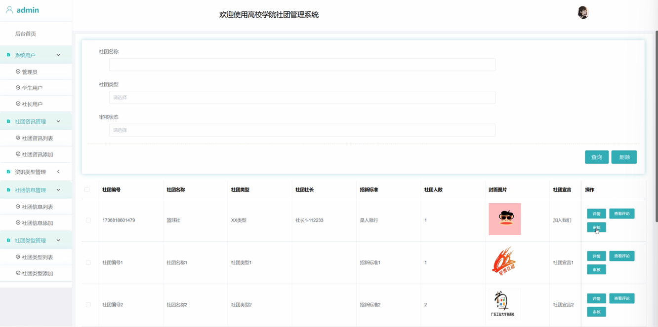 社团信息管理:管理员负责审核社团的基本信息,确保社团资料的准确性和完整性。如发现信息有误,管理员可以要求社团进行修改,或直接进行更改。