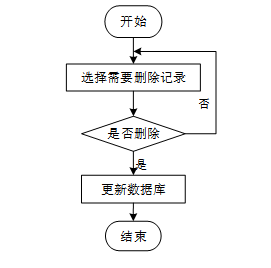 用户选择需要删除的记录后,系统判断是否确认删除。若未确认,返回选择环节;若确认删除,则更新数据库,删除对应记录,完成操作后流程结束。删除信息流程图如图3-8所示。