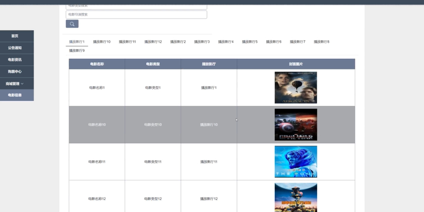 | 查看电影信息测试 | 登录系统 进入电影信息页面 使用搜索栏输入关键词搜索电影信息 | 无 | 符合预期 |