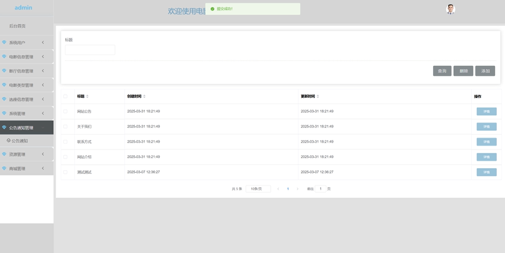 Cinema administrators can enjoy the comprehensive background management convenience through the system. They can efficiently manage movie information, studio seat layout and order data, and monitor the status of the system in real time to ensure accurate and efficient ticketing management. The system also supports the function of announcement release and resource uploading, to help the cinema information update and activity promotion.