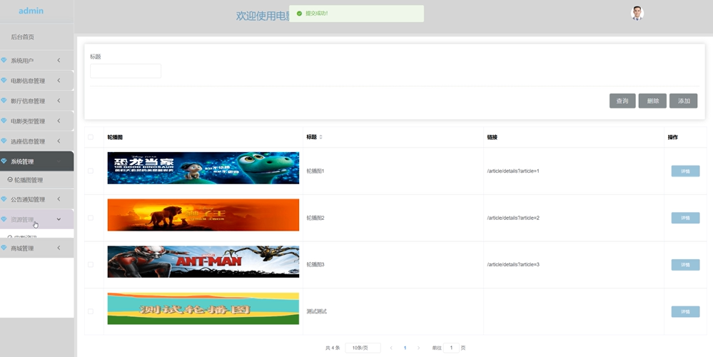 管理员可以管理轮播图的上传、编辑或删除首页轮播图,提升系统美观度。系统管理界面如图5-10所示。