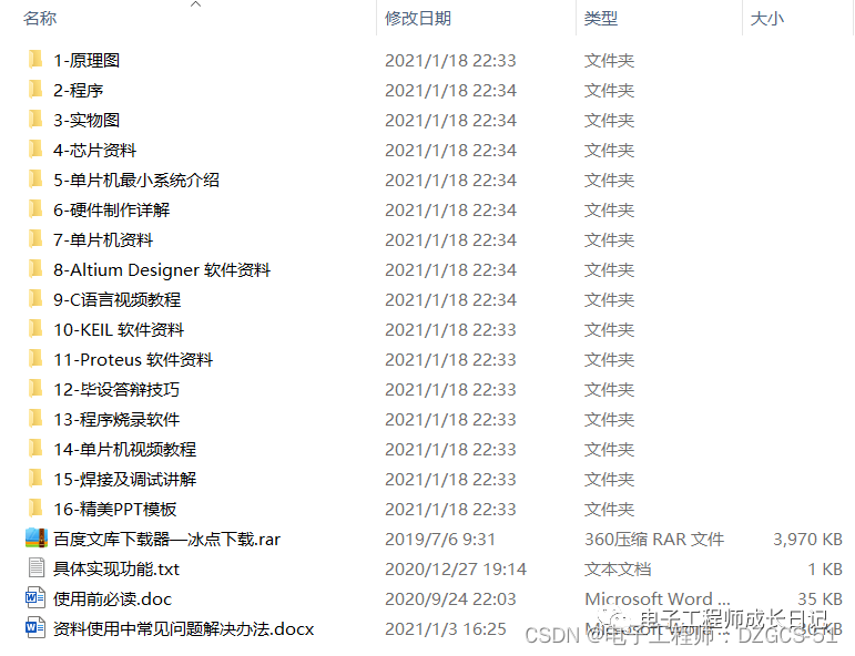 全部资料包括程序(KEIL5)、AD原理图(AD19)、参考论文(仅供参考)、开题报告、任务书、实物图、讲解视频、软硬件设计框图等,具体如图,全网最全!!