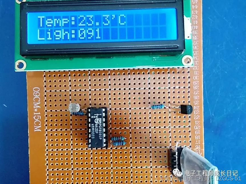 (1)LCD1602液晶实时显示光照值(0-100)和温度。