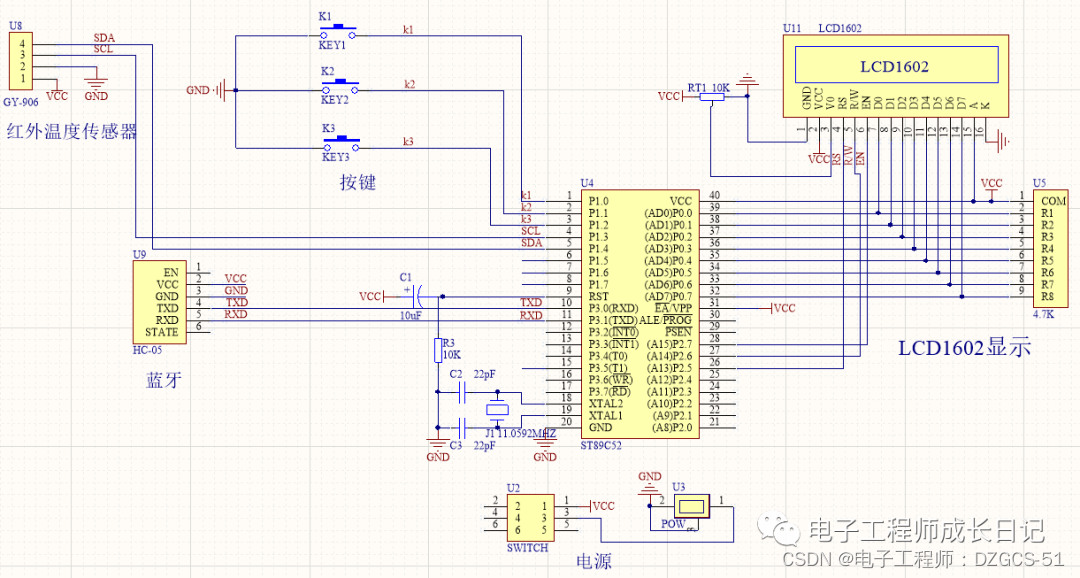 (1)采用红外温度传感器测温并用LCD1602显示;