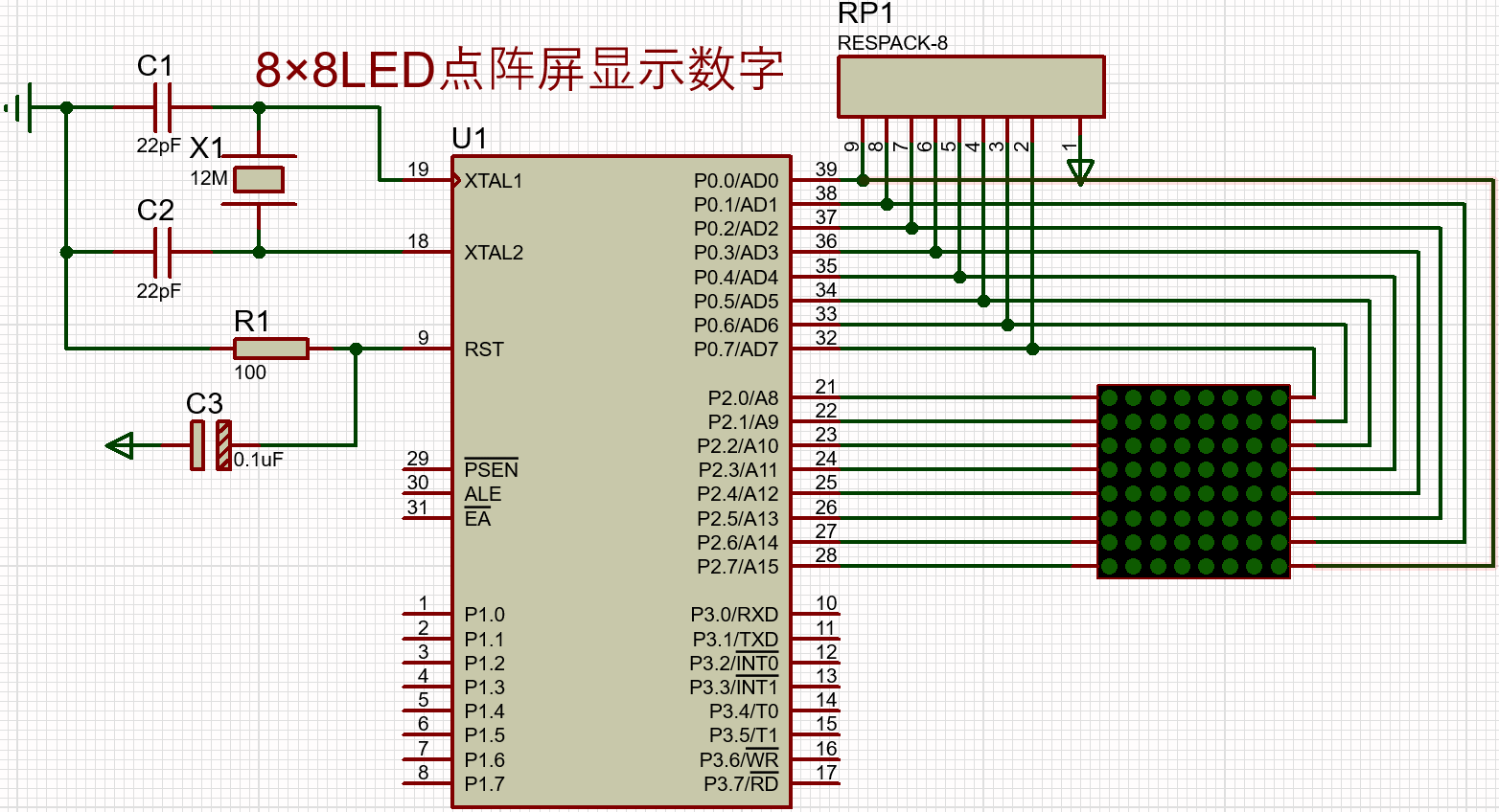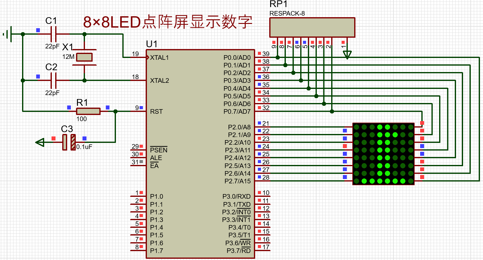 利用51单片机和8*8共阳极点阵显示数字0-8。
