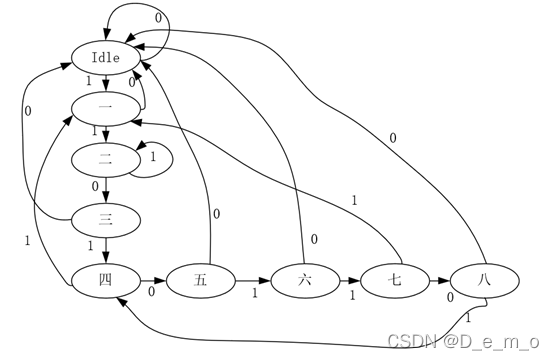 在状态转换图中,状态与状态之间的跳变的判定条件实现了序列的嵌套,具体如图上所示。