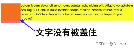 9.当元素浮动时,原则会盖住其后方在文档流中的兄弟元素。但文字、图片等(行内元素和行内块)不会被盖住,其后兄弟元素的文字不会被盖住而是环绕浮动元素四周显示。解决方案包裹文字的元素浮动在前一个元素侧面。(见文字环绕示意图)