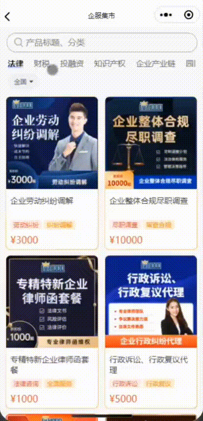 navData: ['法律', '财税', '投融资', '知识产权', '企业产业链', '园区招商', '综合业务'],