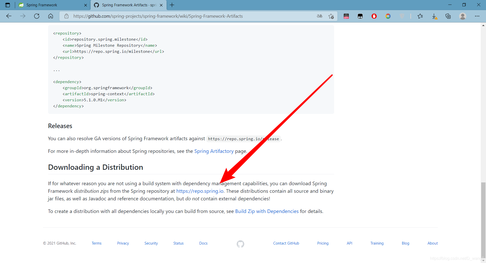 5、 往下翻找到Downloading a Distribution标题下的https://repo.spring.io