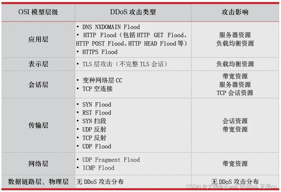 表1 DDoS攻击类型在OSI模型中的分布