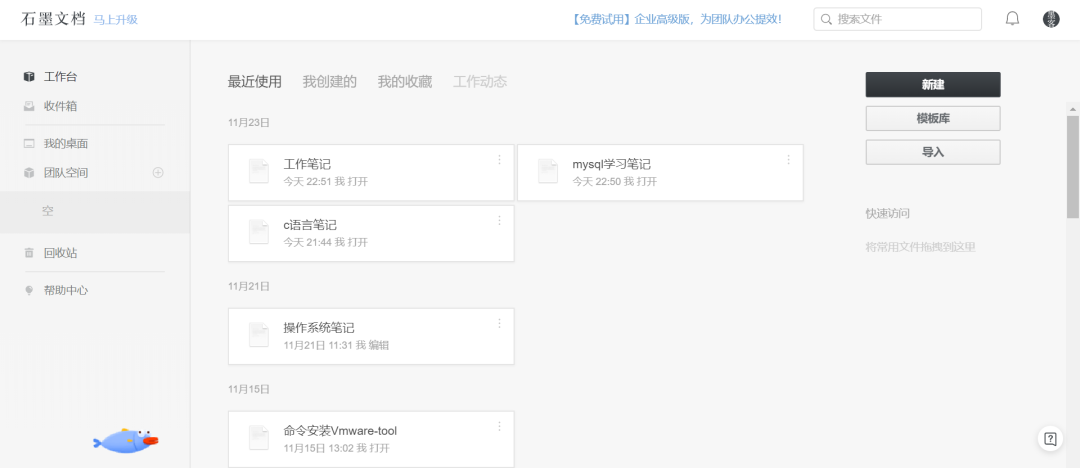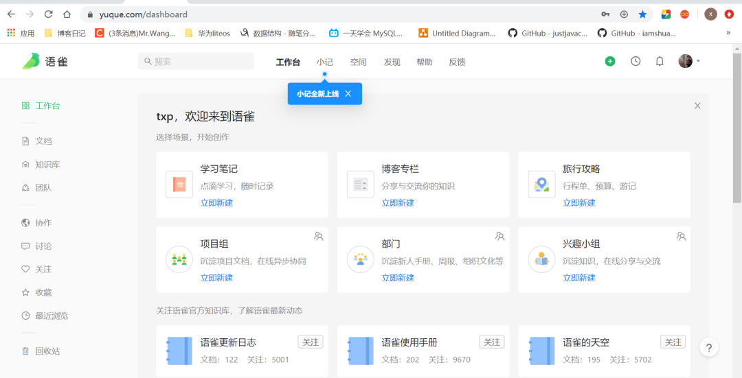 (2)、在线笔记记录我喜欢用石墨文档或者语雀:
