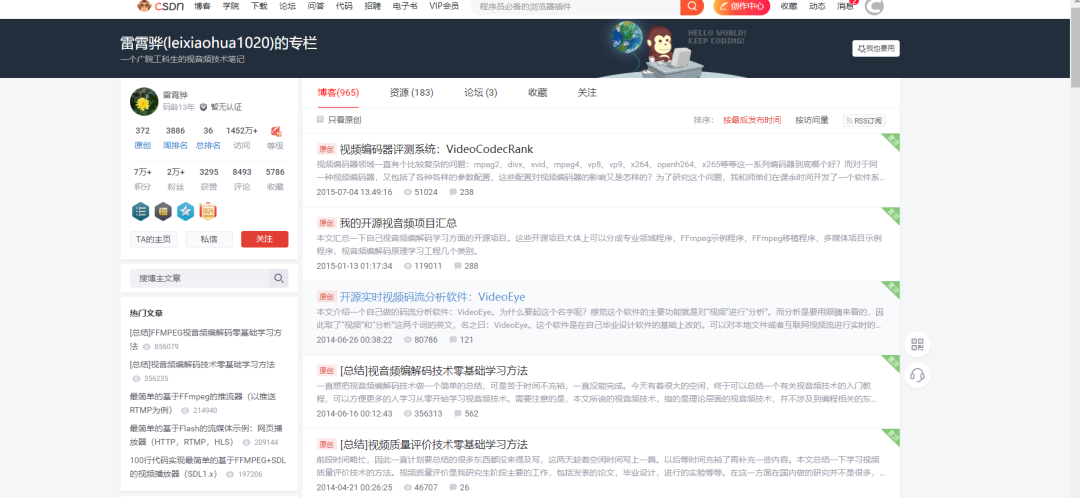 (3)如果对音视频编解码感兴趣的话,可以学习一个前辈的文章:
