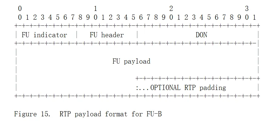 图 15:FU-B 的 RTP 载荷格式(相比 FU-A 多一个 DON 字段)