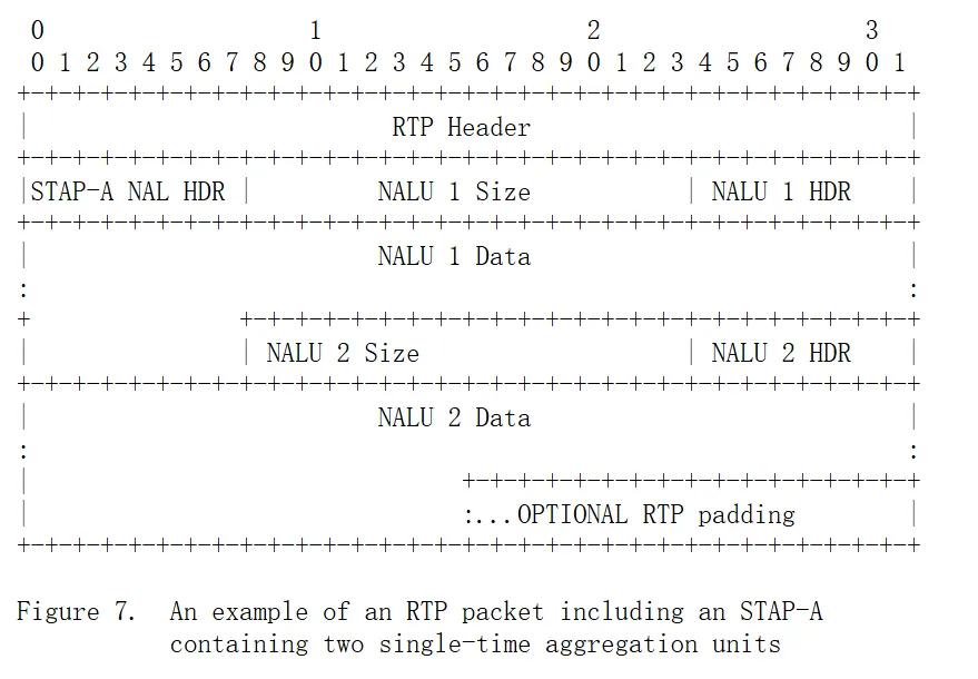 图7. 一个包含 STAP-A 的 RTP 包示例(包含两个单一时间聚合单元)