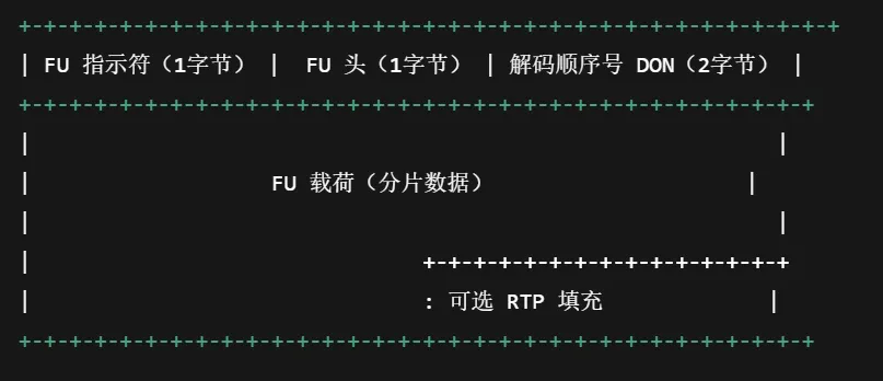 说明: FU-B 中的 DON 字段使得中继设备可以对 NAL 单元进行分片,而不需要将其按照解码顺序重新组织。