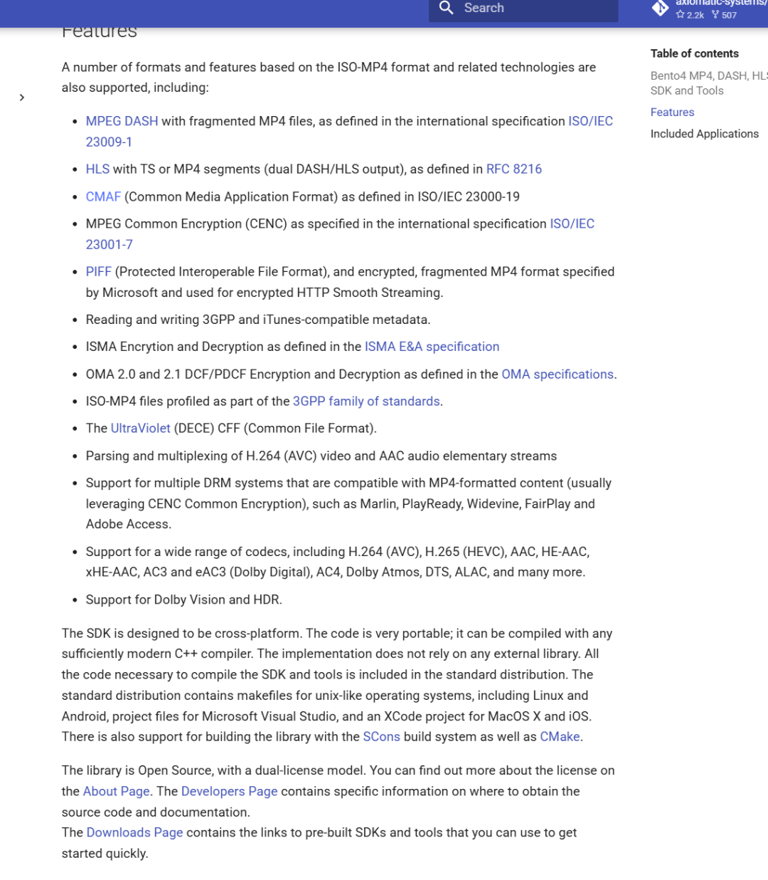 然后就是bento4,这个也是纯cpp实现的,而且里面兼容性非常好,下面是官方的介绍: