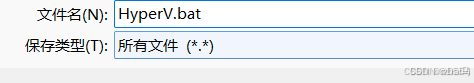 在另存为:HyperV.bat