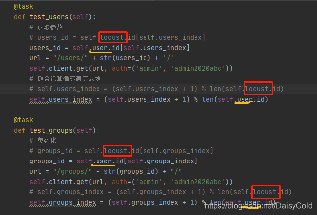 将脚本中TaskSet实例上的locust属性名全部替换为user。