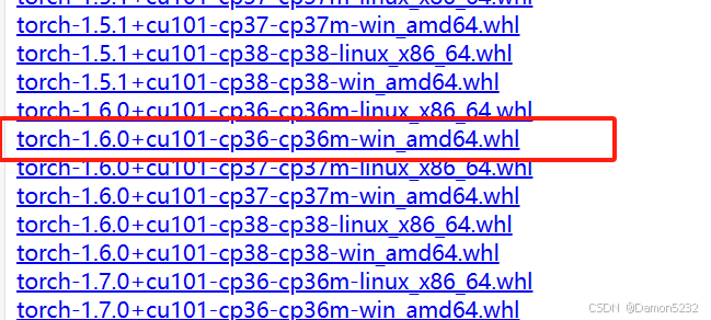 正确版:torch-1.6.0+cu101-cp36-cp36m-win_amd64.whl
