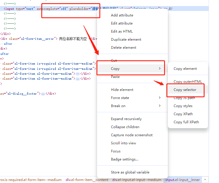 以“填写岗位名称”的selector为例,操作步骤如下: