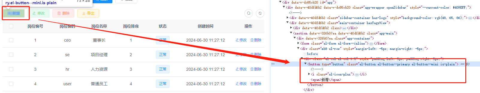 通过查看元素的方式,获取【+新增】按钮的html为