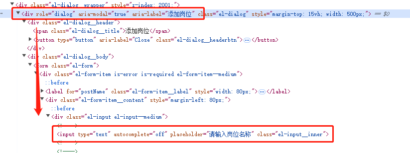 再结合input[type="text"][placeholder="请输入岗位名称"].el-input__inner