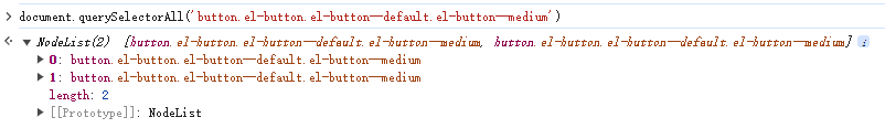 另外注意,这个button的class有4个,但我只写了3个,在使用document.querySelectorAll('button[type="button"].el-button.el-button--primary.el-button--mini')进行查看的时候,发现有两个元素