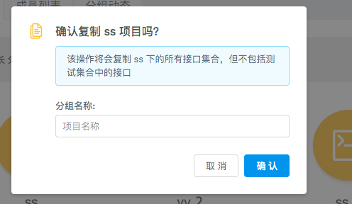 操作: 点击下图左上角的复制按钮,在弹窗中写入复制项目名称点击确定就可以完成项目复制